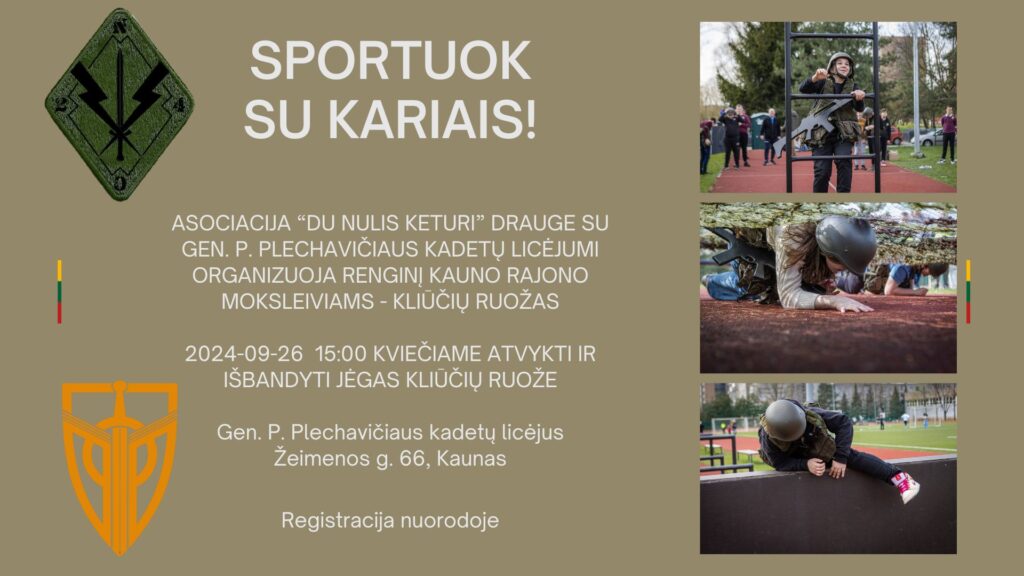ASOCIACIJA “DU NULIS KETURI” DRAUGE SU GEN. P. PLECHAVIČIAUS KADETŲ LICĖJUMI ORGANIZUOJA RENGINĮ KAUNO RAJONO MOKSLEIVIAMS